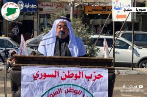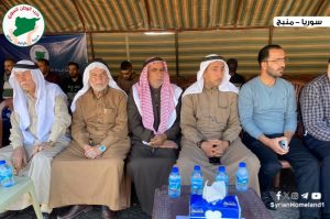 وخلال كلمة القاها الشيخ صادق العصيدي المتحدث الرسمي باسم مجلس الأعيان في منبج رحب شيوخ ووجهاء العشائر في المدينة بهذه الخطوة التي وصفوها بالمباركة، أملين ان يكون حزب الوطن السوري مظلةً جامعة لكل السوريين مؤكدين دعمهم الكامل للحزب في مسيرته الرامية لـ”تحقيق مصالح الشعب وتلبية تطلعاته في العيش بحرية وكرامة” مثمنين اهتمام الحزب في شؤون العشائر التي تعد ركيزةً علية لتحقيق الاستقرار الاجتماعي.