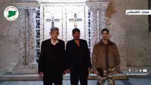 كان في استقبال الوفد الأب يوسف عاصي، حيث قدم الرفاق تعريفا بحزب الوطن السوري ومبادئه الأساسية التي تؤكد على العيش المشترك وعدم التمييز بين الأديان، مع ضمان حرية ممارسة الطقوس والشعائر الدينية.