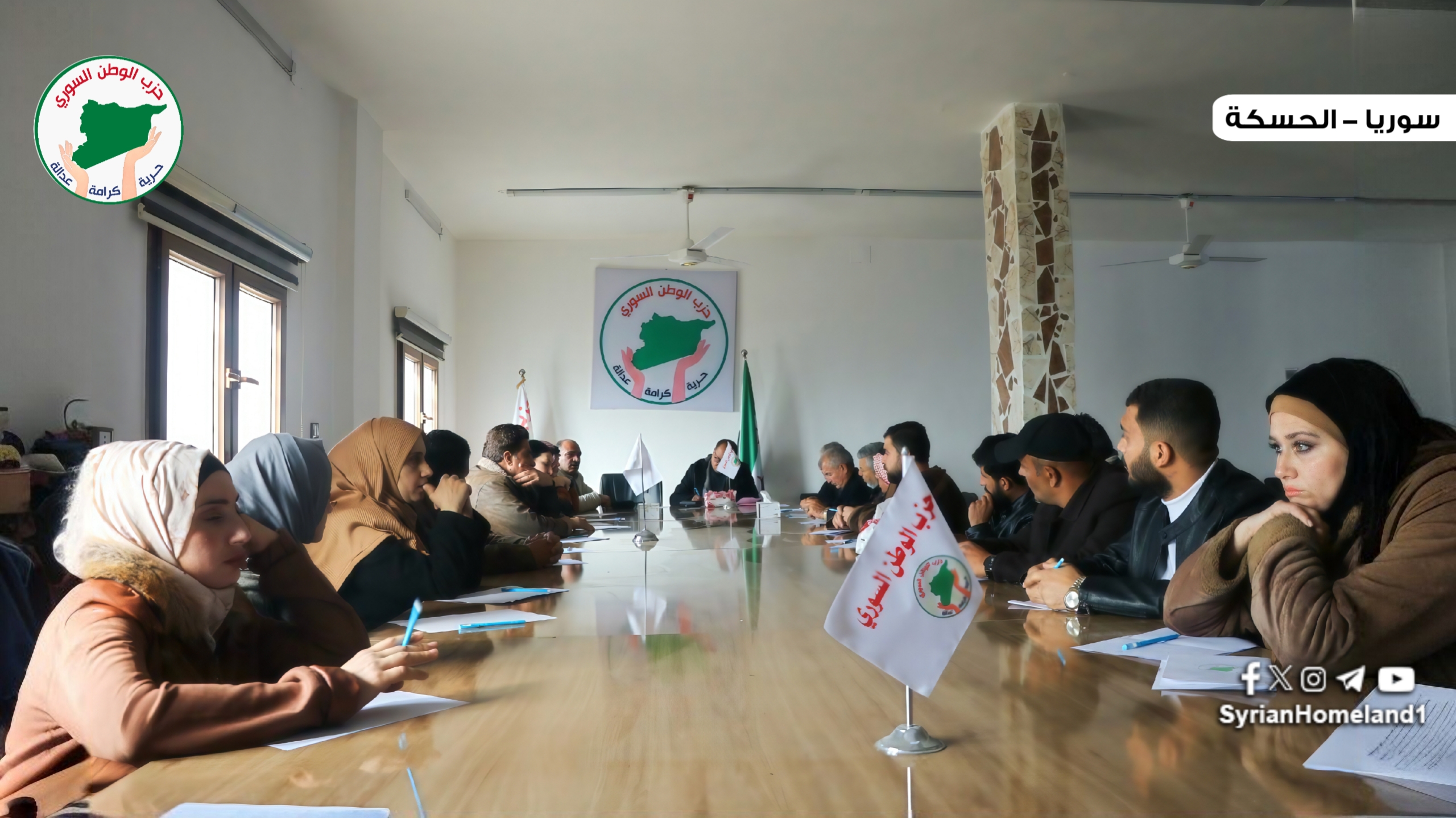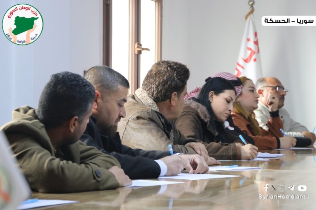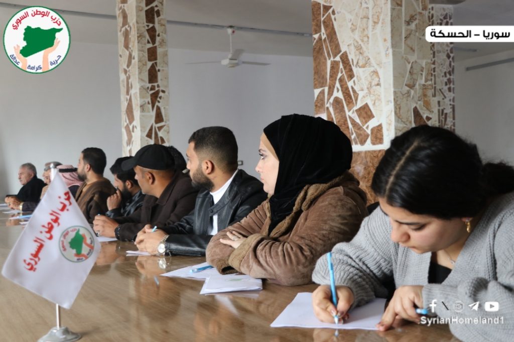 عقد حزب الوطن السوري في مقره لقاءً سياسياً مفتوحاً، استضاف خلاله الأستاذ حسن محمد علي، عضو الهيئة الرئاسية لمجلس سوريا الديمقراطية والرئيس المشترك لمكتب العلاقات فيها، بحضور أعضاء الحزب.