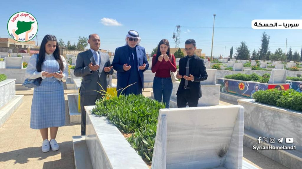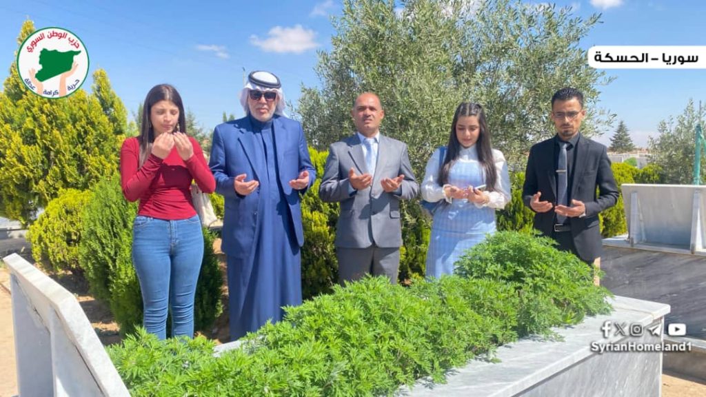 شارك وفد من قيادة حزب الوطن السوري أهالي الشهداء قراءة الفاتحة في أول أيام العيد، أثناء زيارتهم لأضرحة شهداء الوطن ، تقديرًا لتضحياتهم في سبيل الوطن.