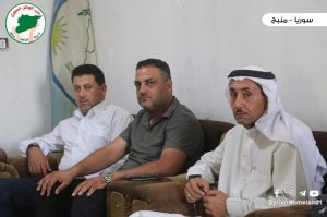 فيما استقبال الوفد عضو المكتب السياسي ومسؤول فرع منبج لحزب التحالف الوطني الديمقراطي السوري عزيز عبود و رئيس مكتب العلاقات العامة فرع منبج صدام الجاسم و عضو مكتب المرأة ميرفت حمادين و أعضاء مكتب العلاقات العامة مصطفى بوطان و محمد الجاسم ومريم برجاوي و فهد العثمان.