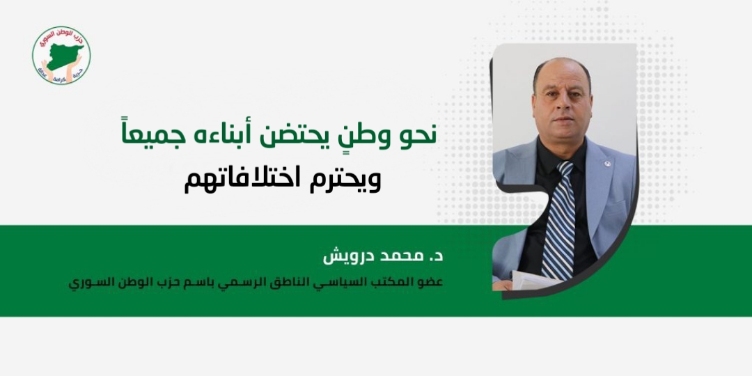 وعليه، فإننا في حزب الوطن السوري نجدد التزامنا برؤية وطنية جامعة تقوم على بناء دولة ديمقراطية تعددية، يتساوى فيها الجميع أمام القانون، وتحكمها قيم الانتماء والعدالة والحرية لا العصبيات ولا الغرائز وطن يحضن أبناءه ويصون اختلافاتهم، ويمنحهم جميعاً حق الانتماء الكامل والمواطنة الكاملة، بعيداً عن أي تمييز أو إقصاء.