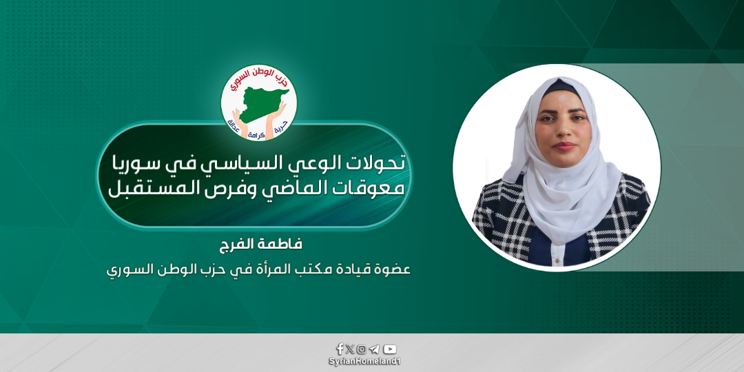 سوريا لا يمكن أن تنهض إلا بسوريين واعين بقيمة وطنهم وبدورهم في حمايته وتطويره فالنضج السياسي ليس رفاهية بل هو شرط من شروط النهوض والخروج من الأزمات وهو الأرضية التي يجب أن نقف عليها جميعا لنبني سوريا الجديدة سوريا لكل أبنائها دون إقصاء ولا استبداد ولا خوف.