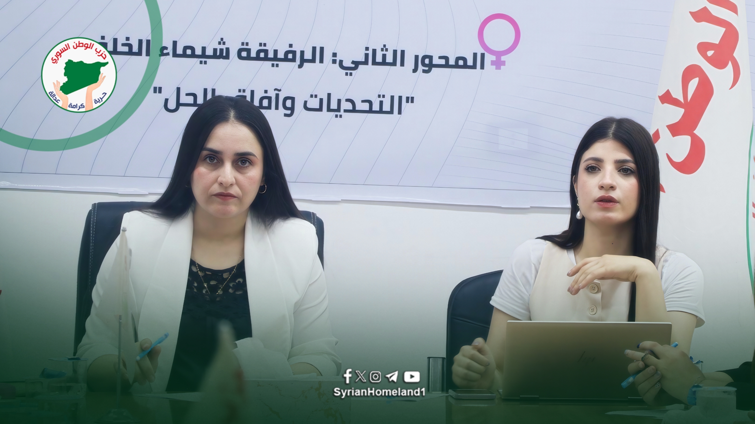 نظّم مكتب المرأة في حزب الوطن السوري في مقره بمدينة الحسكة ندوة حوارية حملت عنوان “دور المرأة في بناء سوريا الجديدة وآفاق الحل”، بحضور ممثّلات عن الأحزاب السياسية ومؤسّسات المجتمع المدني، وذلك ضمن برنامج امتد من الساعة العاشرة صباحاً حتى الواحدة ظهراً.