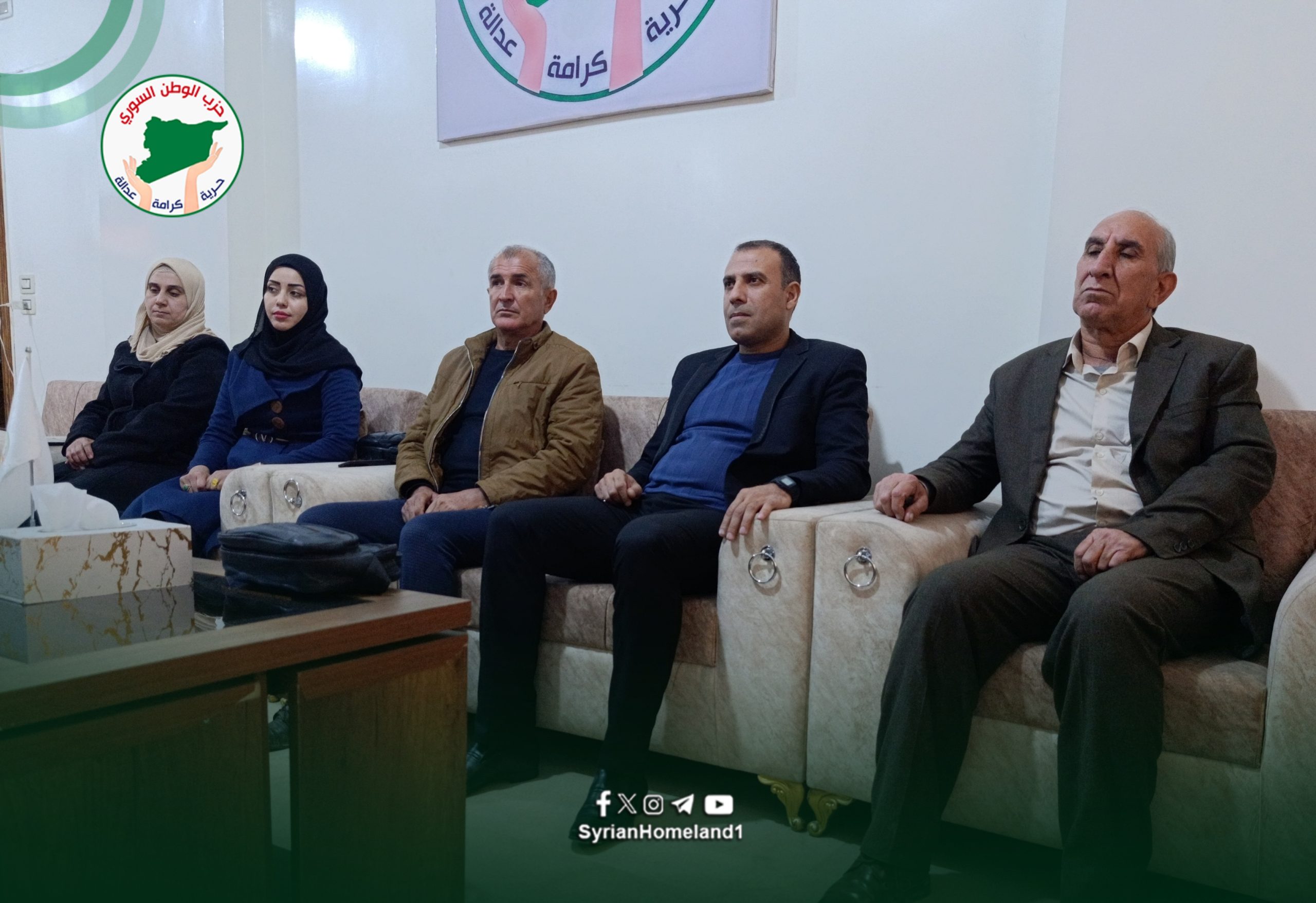 استقبل اليوم حزب الوطن السّوري وفداً من حزب اليسار الكردي في سوريا برئاسة الأستاذ محمد صالح عبدو عضو اللجنة المركزية في الحزب، وذلك في مقر الأمانة العامّة في حزب الوطن السّوري بمناسبة مرور الذّكرى السّنويّة الثّانية لتأسيس الحزب