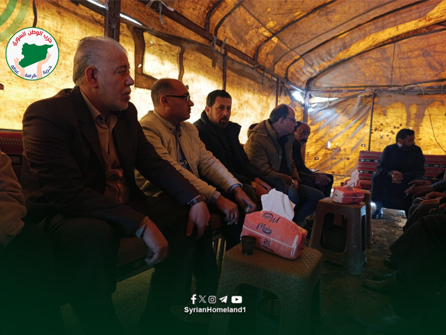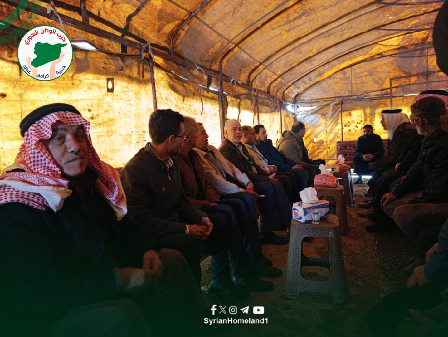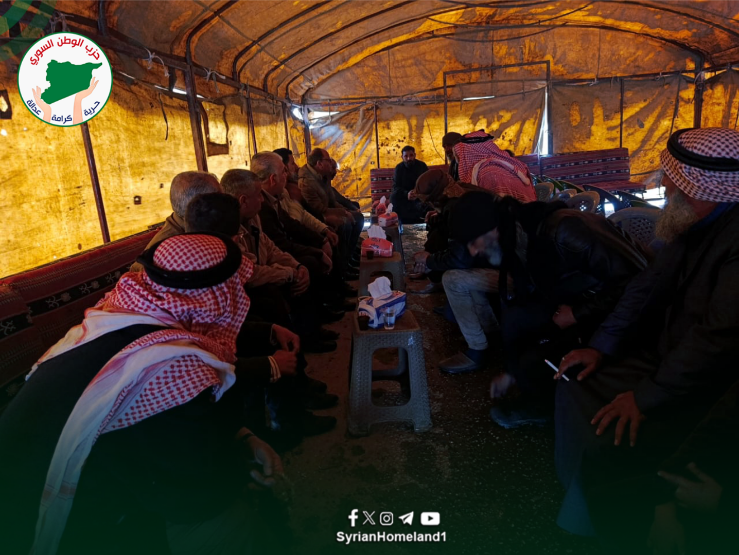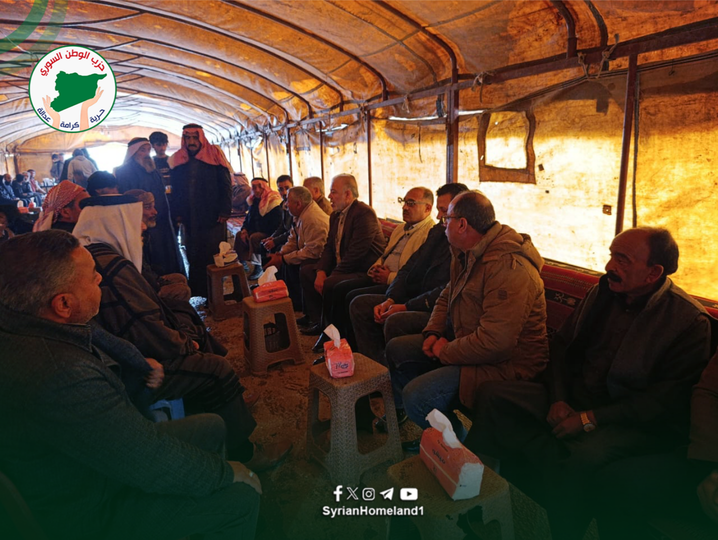 تقدّم وفد من حزب الوطن السّوري برئاسة الأمين العام للحزب الرّفيق ثابت الجوهر بواجب العزاء لعائلة المنصور من قبيلة الشرابيين جرّاء تعرّض عدد من أبنائها لانفجار أجسام متفجّرة من مخلّفات الحرب في معمل “للخردة” بجانب دوّار الغزل بمحافظة الحسكة
