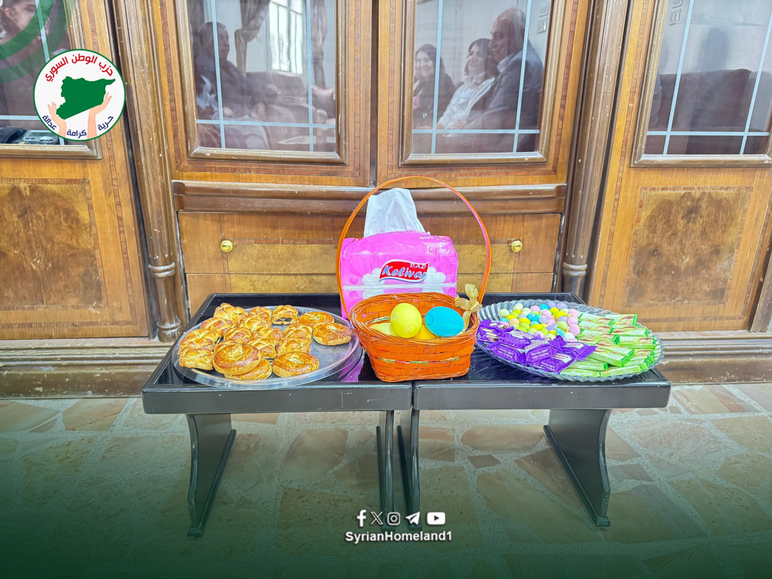 كما جدّد وفد حزب الوطن السّوري في ختام زيارته تهانيه لكل الشعب السّرياني الأصيل بمناسبة حلول عيد الفصح المجيد، داعياً أن يكون العيد تجسيداً للسّلام والمحبَة.