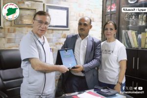 واستجابة من حزب الوطن السوري لهذه النتائج، وبدافع من المسؤولية الإجتماعية والإنسانية، أطلق الحزب مبادرة تقديرية تحت عنوان ” طبيب الإنسانية ” تتضمن زيارة مجموعة من الأطباء والصيادلة في عياداتهم وصيدلياتهم في مركز مدينة الحسكة وأحيائها بهدف تكريمهم معنوياً تحت عنوان ” شكراً من القلب إلى القلب” تعبيراً عن الشكر والامتنان لتعاملهم الأخلاقي والإنساني مع المرضى، ووقوفهم بجانب الفئات المحتاجة من خلال تخفيف أعباء العلاج عنهم.